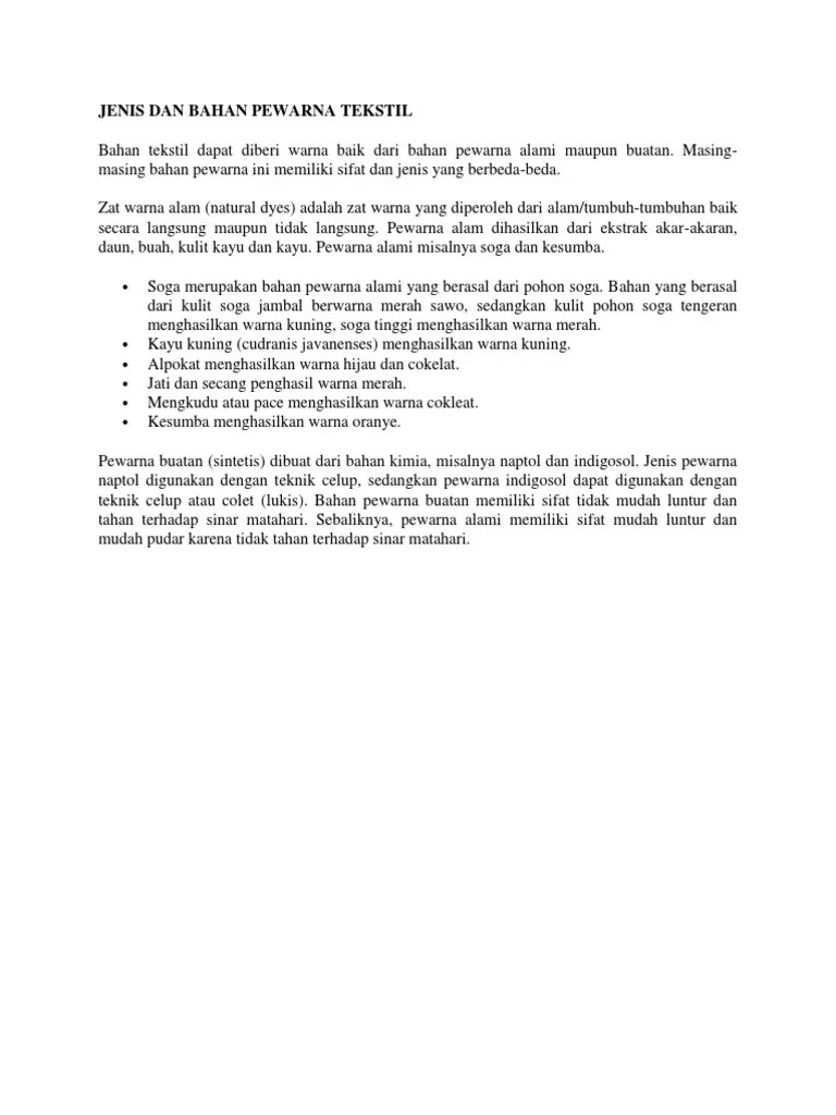 adalah untuk menentukan kondisi pencelupan yang tepat dan pemilihan jenis fiksator yang. Perendaman dilakukan selama 2 jam. Bagaimana untuk mencelupkan kain di rumah. cat tekstil cat tekstil adalah cat yamg juga berbahan dasar air. Sebagai contoh pewarnaan pada kain tenun yang memanfaatkan pewarna alami lebih digemari daripada pewarna sintetik karena dapat memberikan keistimewaan tersendiri 4 cat merupakan salah satu produk industri yang cukup penting saat ini yang digunkaan untuk melapisi permukaan bahan sehingga permukaan tersebut menjadi lebih indah atau bernilai tinggi.